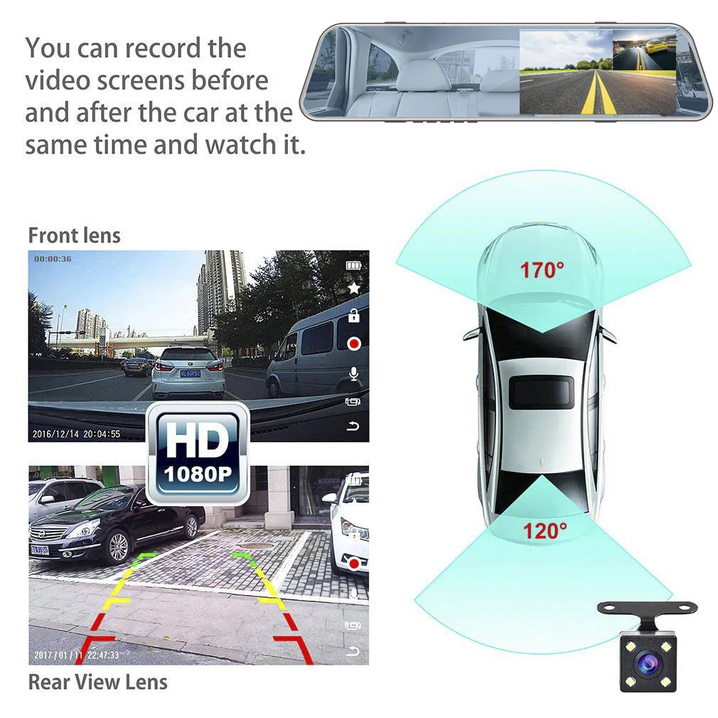 The dash camera has 170° front camera and 120°rear camera,monitoring the roads ahead and behind the car simultaneously.